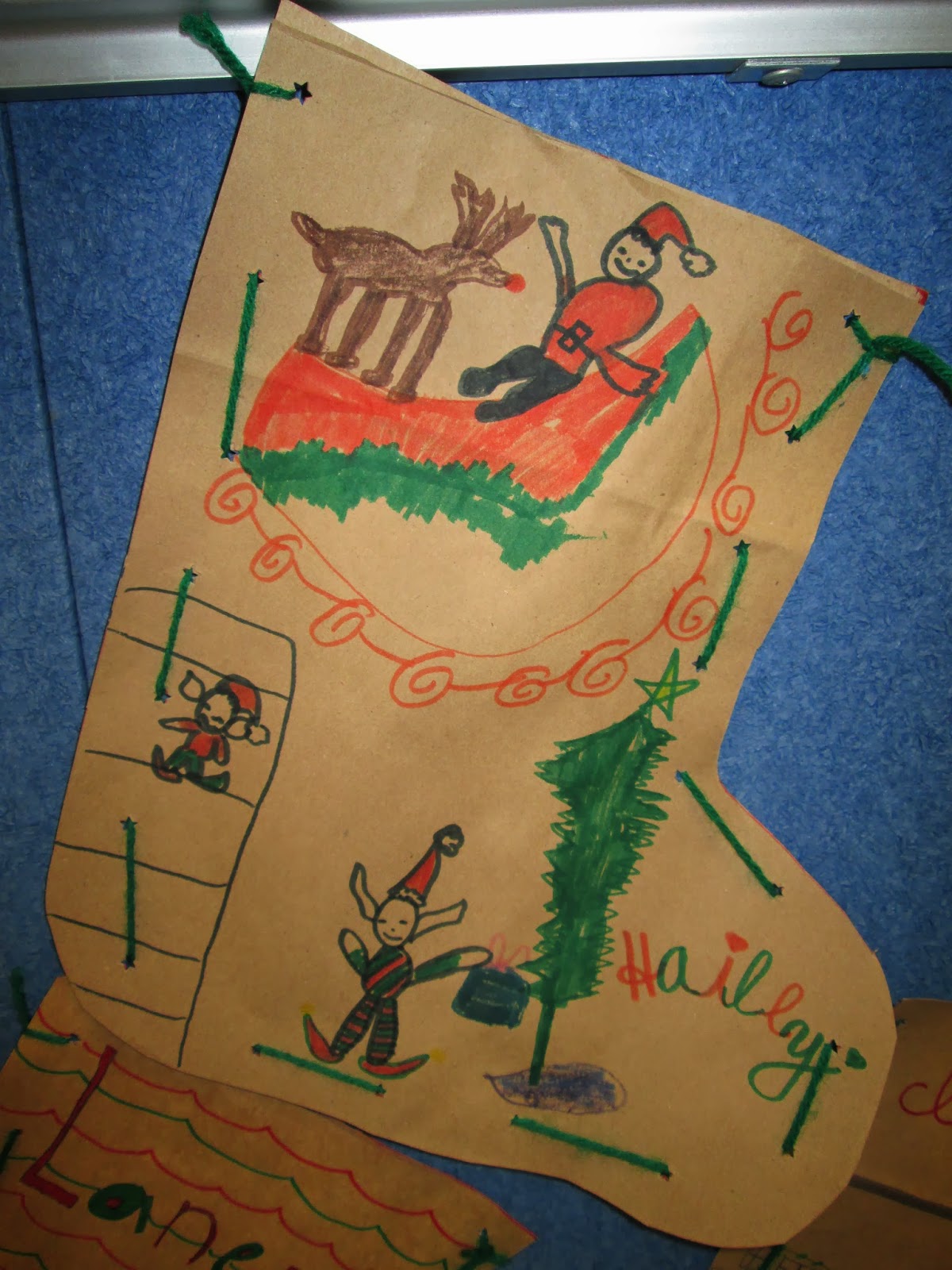 Now that it's December, our room needed the turkeys gone and the tinsel up! This week, we decorated and sewed together stockings. It will go along with our Old Fashioned School Day/ Christmas Celebration later this month. The students are also asked to bring in some stocking stuffers for their classmates (candy, pencil, eraser, gum, etc.). They will get to open their stockings as a part of our Winter Party the last day before break. I love the way the add some holiday spirit to our classroom!